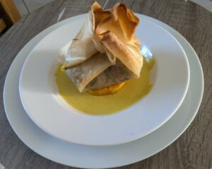 Déposer la tranche de butternut dans une assiette creuse, verse autour la sauce curry, servir aussitôt.
